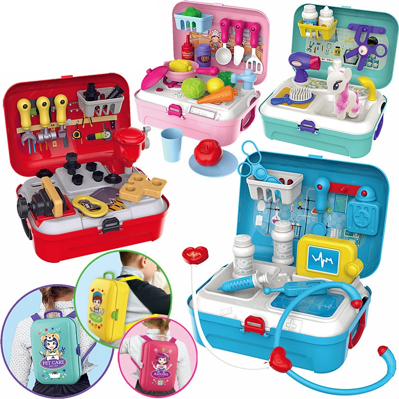 New Kitchen Pet Dresser Doctor Cash Register Tool Play House Backpack Children's Toy 1:2 Simulation Mini Storage Box T