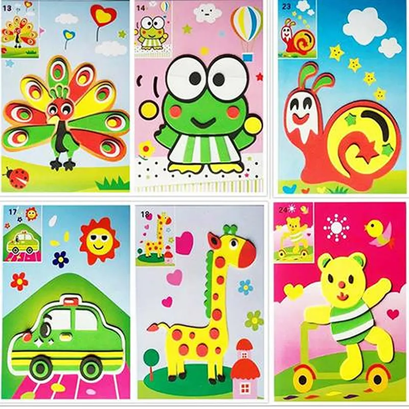 DIY Handmade 3D Eva Foam Puzzle Sticker Coloring Book Painting Scratch Paper Sticker Drawing Template For KIds