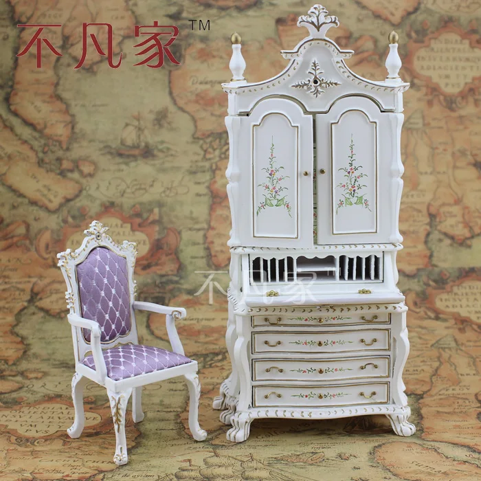 Dollhouse 1/12 scale miniature furniture Elegant hand painted collection cabinet and chair